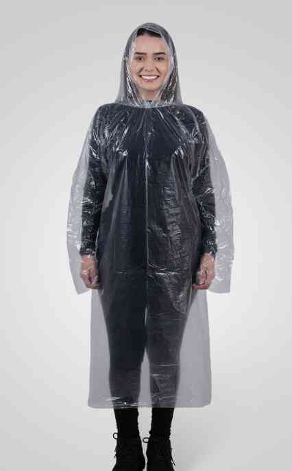 O design com capuz garante proteção para a cabeça e pescoço. Além disso, seu tamanho de 1,20m cobre da cabeça até as pernas, trazendo mais comodidade para andar e se locomover. Por ser sem elástico, é fácil de vestir e retirar quando necessário.