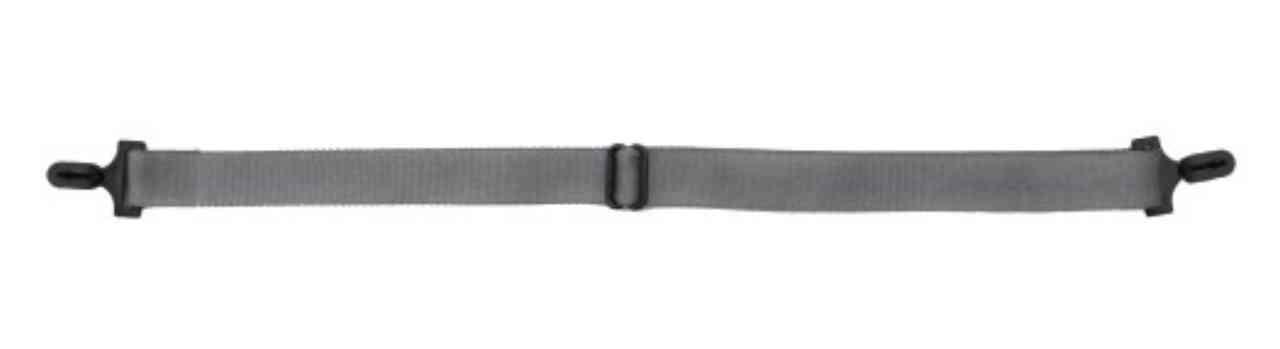 Jugular fabricada em tecido elástico de látex e poliéster com presilhas em plástico rígido.