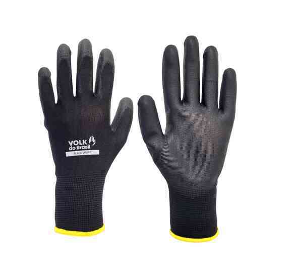 Luva de segurança confeccionada em fibras sintéticas (poliéster), 13 gauge, revestimento em poliuretano (PU) na palma e dedos
