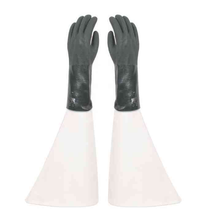 Luva de Segurança confeccionadas em suporte têxtil de Algodão, revestida com banho total de Policloreto Vinílico (PVC) e textura antiderrapante na face palmar.