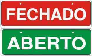 A PLACA VEM COM UM LADO ESCRITO “ABERTO” E NO OUTRO “FECHADO”.