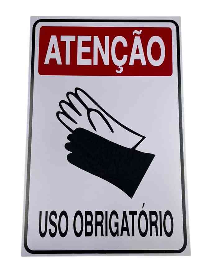 Placa de segurança de trabalho para a orientação dos funcionários para o uso de EPI’S: “Uso Obrigatório de Luvas”