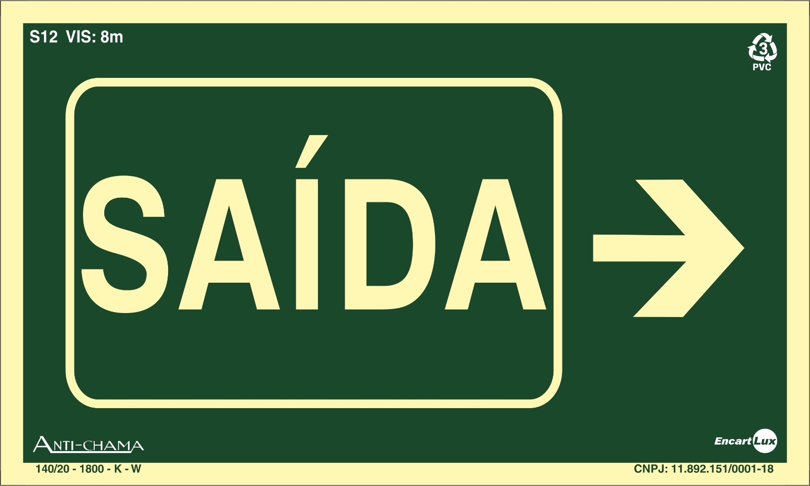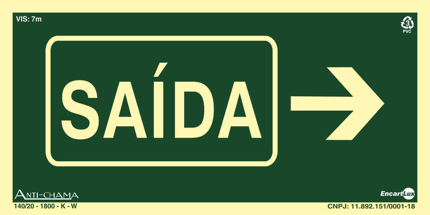PLACA SIN. FOTOLUMINESCENTE SAIDA SETA P/ DIREITA ENCARTALE 25X15 CM