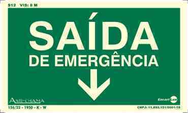 - A Placa Fotoluminescente para indicar a direção da saída de emergência com seta a baixo, facilmente identificada em locais com ou sem incidência de luz;