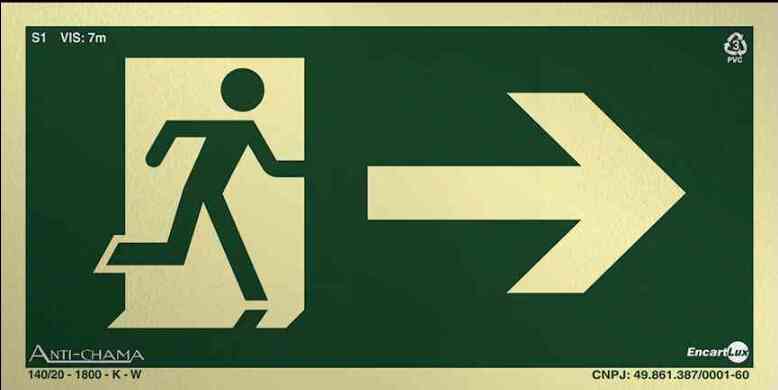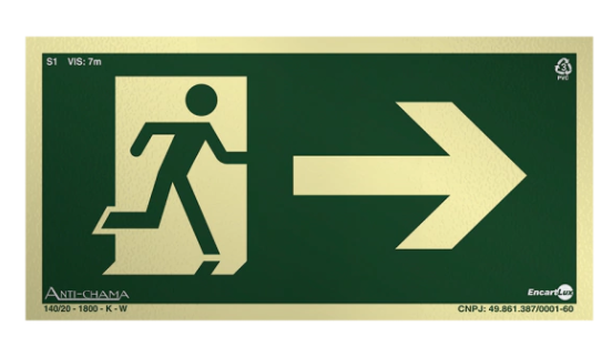 PLACA SIN. SAIDA SETA P/ DIREITA FOTOLUMINESCENTE ENCARTALE 25X15 CM